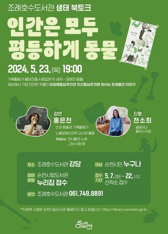 ![]() 순천시, 홍은전 동물권활동가 생태 북 토크 개최 |