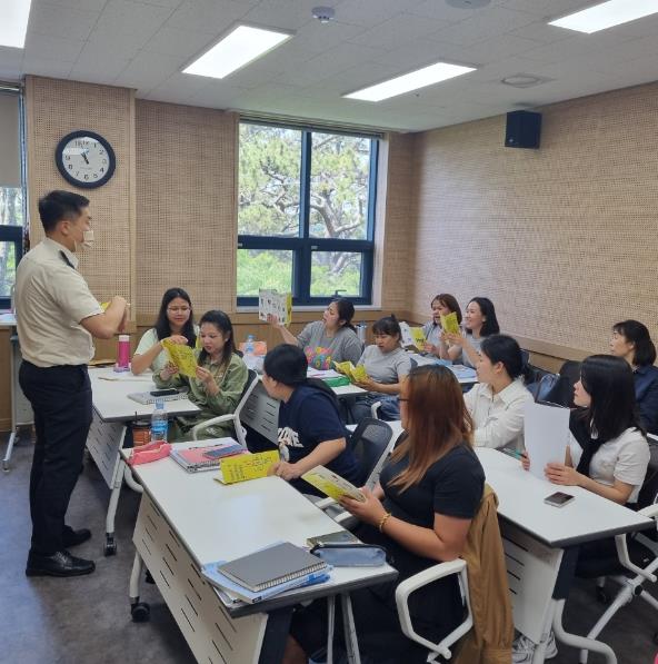 ![]() 외국인 근로자 안전메뉴얼 교육 중인 소방교 김승후 |