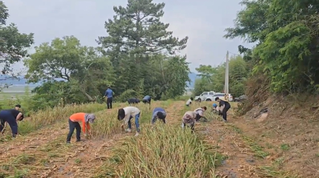 지난달 30일에는 칠량면에서 마늘 수확 작업 등에 농정실과 칠량면 직원 23명이 일손돕기에 참여했다.