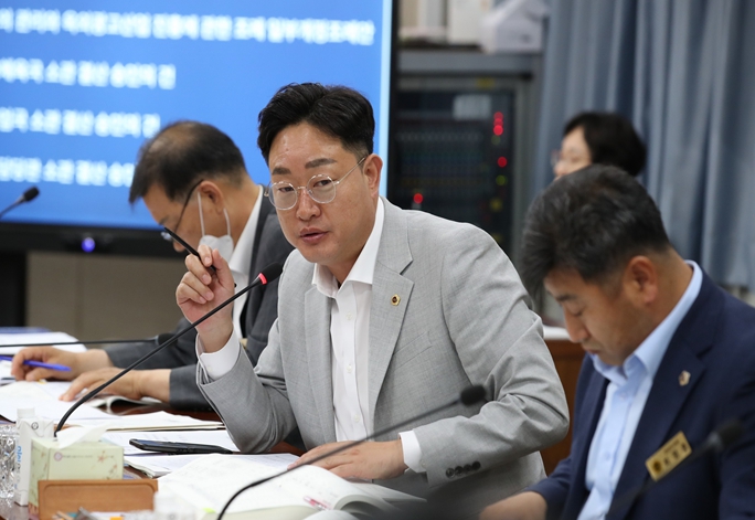 ![]() 상임위원회 회의에서 질의하는 나광국 전남도의원 |
