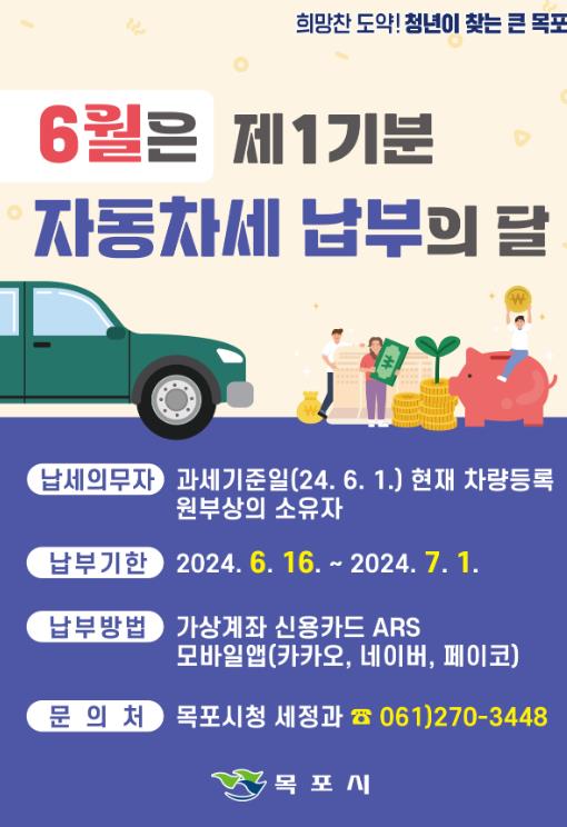 ![]() 목포시, 2024년도 제1기분 자동차세 부과 |