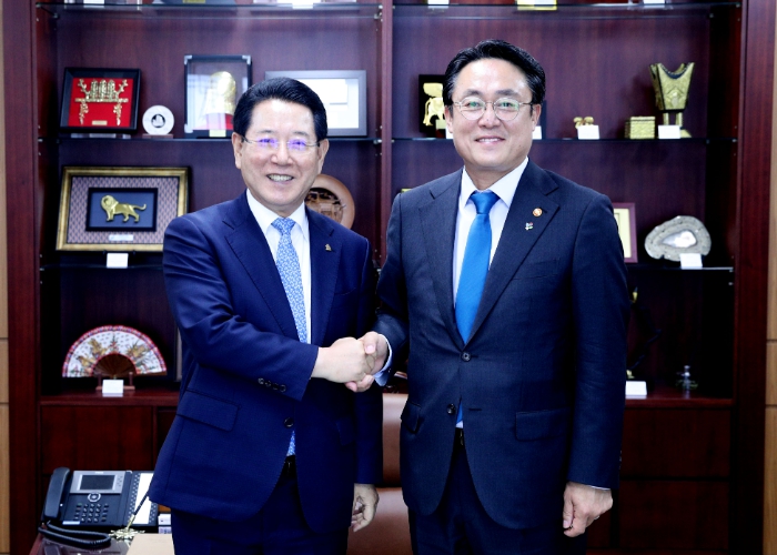 ![]() 김영록 전라남도지사가 17일 정부세종청사에서 강도형 해양수산부 장관을 만나 김 양식어장 확대 개발, 국립 김산업 진흥원 및 물류단지 조성 등 전남 주요 현안 사업을 건의했다. |