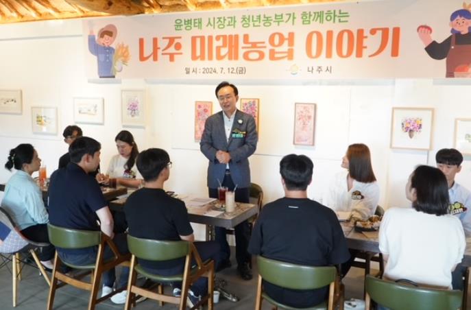 이 자리에는 13명의 청년농업인과 윤병태 나주시장, 나주시농업기술센터 관계자들이 참석했으며 농업 현장에서의 다양한 경험과 청년 농업인들이 겪고 있는 현실적인 어려움에 대해 심도있는 대화를 나눴다.