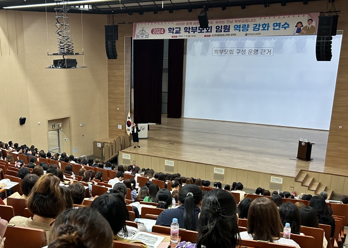 ![]() 16일 순천만생태문화교육원에서 ‘2024. 학교 학부모회 임원 역량 강화 연수’가 진행되고 있다. |