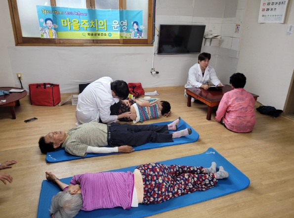 ![]() 마을주치의: 능주보건지소 공중보건의가 마을주치의 운영으로 주민을 진료하는 모습 |