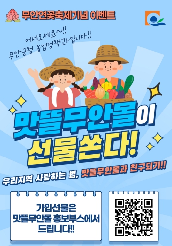 행사는 무안연꽃축제 기간인 7월 25일부터 28일까지 축제장 내 홍보부스에서 진행되며, 맛뜰무안몰 신규 회원 가입 시 장바구니, 부채 등 다양한 선물을 증정한다.
