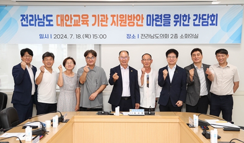 ![]() 이규현 전남도의원(왼쪽에서 다섯번째)이 간담회를 마치고 김호범 전라남도교육청 학생생활교육과장(오른쪽에서 세번째) 및 전라남도 대안교육기관 대표들과 단체 사진을 찍고 있다. |