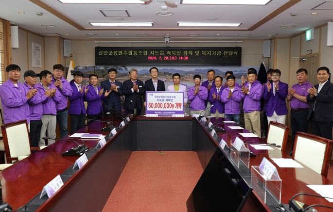 ![]() 신안군정원수사회적협동조합 지도읍 작목반, 신안군에 장학 및 복지 기금 총 1억 원 약정 기탁 |
