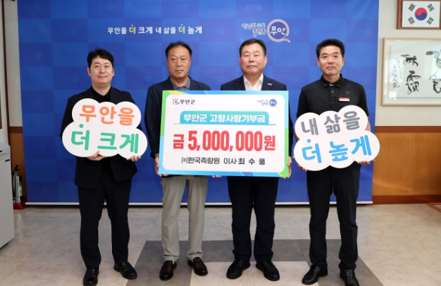 ㈜한국측량원 최수풍 이사는 2년 연속 무안군 고향사랑기부제에 참여함으로써 올해로 시행 2년 차를 맞이한 고향사랑기부제가 더욱 활성화하고 지속가능한발전 동력을 확보하는 데 힘을 보탰다.