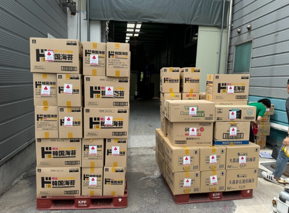 ![]() ㈜해송식품이 나주시에 1000만원 상당의 김 274박스를 기탁했다. |