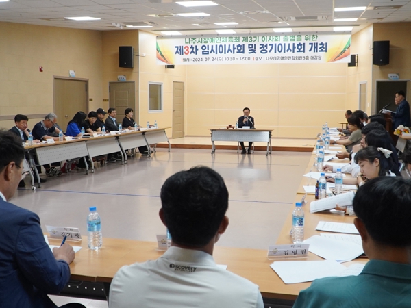나주시장애인체육회는 24일 나주시장애인연합회관 3층 대강당에서 이사회를 열고 제3기 출범을 알렸다고 25일 밝혔다.