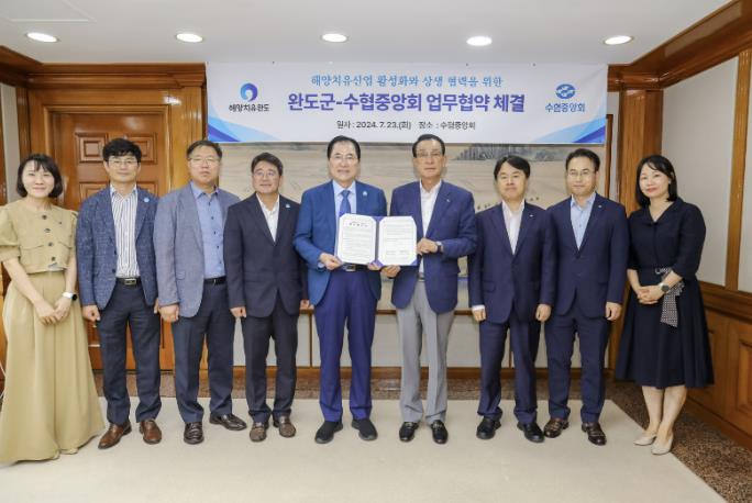 업무 협약은 수협중앙회 접견실에서 진행됐으며, 신우철 완도군수와 노동진 수협중앙회장을 비롯한 관계자 등이 참석했다.