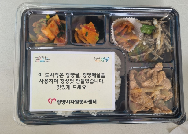 ‘우뢰징검다리봉사단’(양성모 단장)은 ‘모두愛 밥차’를 운영하기 위해 수해 복구 현장으로 출발하기 이틀 전부터 음식 재료를 준비해 현장에서 광양의 농산물(광양 쌀, 광양 매실)로 만든 도시락 300여 개와 함께 준비한 매실 음료를 주민들과 자원봉사자들에게 제공했다.