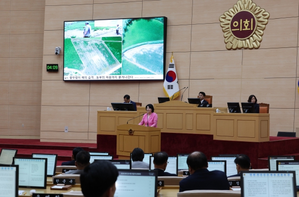 ![]() 26일 윤명희 전남도의원이 제383회 제2차 본회의에서 5분 자유발언을 하고 있다. |