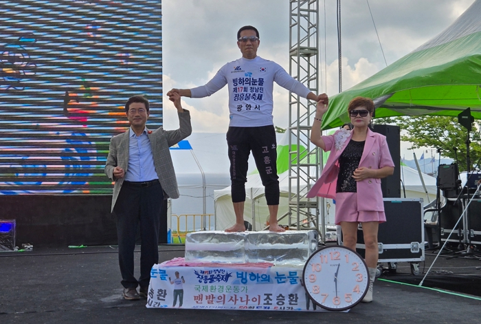 한편 광양시 홍보대사로 활동 중인 조승환 씨는 광양 태생의 국제환경운동가로 기후 위기의 심각성을 널리 알리기 위해 빙하를 뜻하는 ‘얼음’ 위에서 지구온난화로 고통받고 있는 지구를 표현하는 ‘맨발’로 오래 서 있는 퍼포먼스를 이어가고 있다.