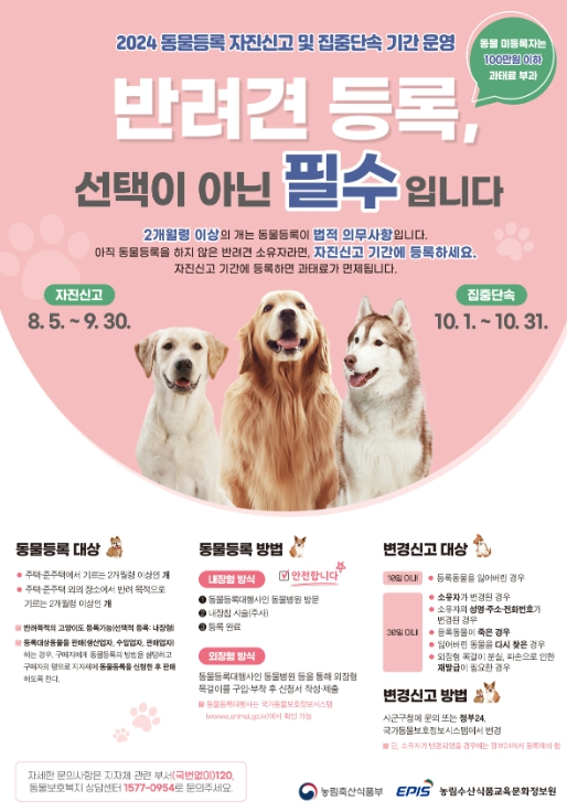 김경국 축산과장은 “동물 등록은 선택이 아닌 필수로 성숙한 반려동물 문화가 조성될 수 있도록 반려견주들의 많은 참여를 바란다”고 말했다.