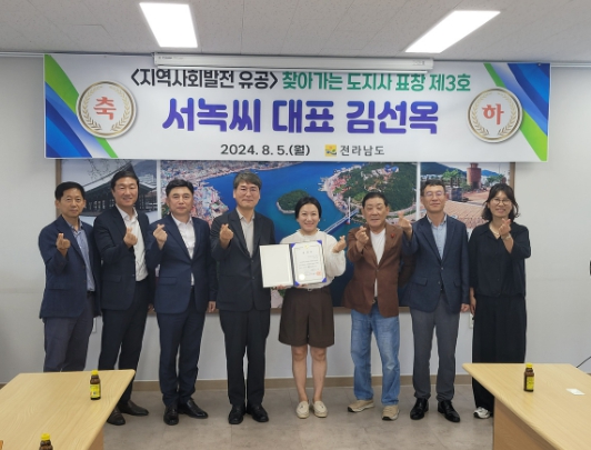 ![]() 여수 중앙동 서녹씨 김선옥 대표, ‘찾아가는 도지사 표창’ 수상 |