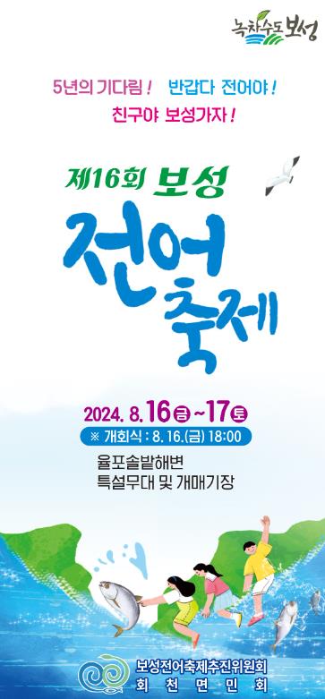 올해로 16회를 맞이하는 보성전어축제는 지난해까지 코로나 등의 사유로 개최되지 못하다가 회천면민협의회의 주최로 5년 만에 열리게 된다.