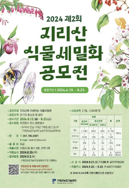 ![]() 구례군, 제2회 지리산 식물 세밀화 공모전 개최 |