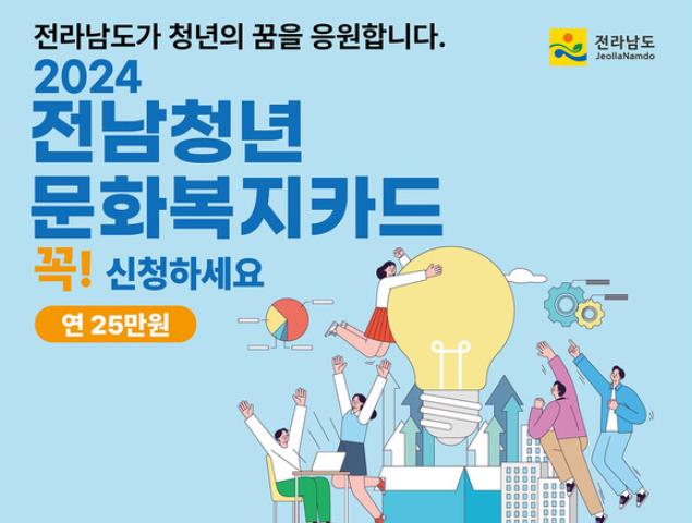 ‘전남청년 문화복지카드 지원사업’은 2022년 8월 1일 이전부터 계속 전남 도내에 거주하고 있는 19세 이상 28세 이하 청년(1996부터 2005년도 출생자)에게 문화복지 활동을 위해 1인당 최대 25만 원을 지원하는 사업이다.