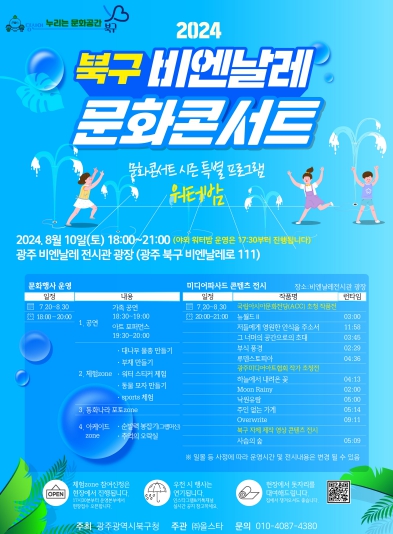 ![]() 광주광역시 북구, 비엔날레 문화콘서트 여름 특별 프로그램 ‘워터밤’ 운영 |