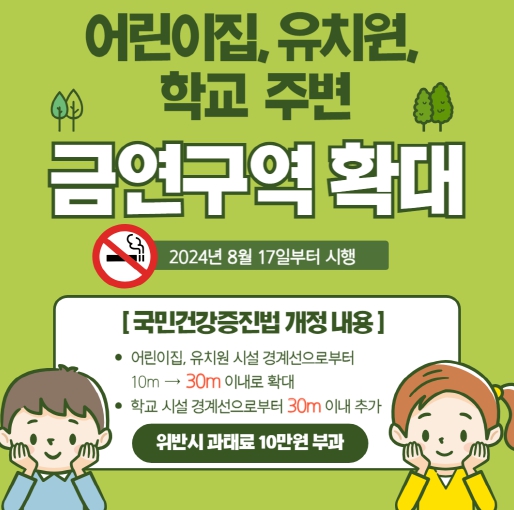 이번 금연구역 지정은 '국민건강증진법'제9조제6항의 개정에 따라 이루어졌으며, 영광군은 총 58개소(어린이집 16, 유치원 13, 학교 29)가 해당된다. 금연구역 지정 범위는 해당 시설의 경계로부터 30미터 이내이며, 일반 공중의 통행 및 이용에 제공된 구역을 말한다.