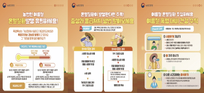 군 관계자는 “연일 무더운 날씨로 폭염경보가 지속되고 있어 열사병 등 온열질환 발생 위험이 크다”라며 “농업 안전 수칙 홍보를 강화해 농업인의 온열질환 예방에 최선을 다하겠다”라고 말했다.