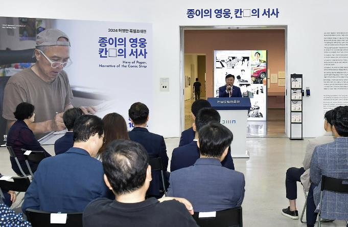 ![]() 정기명 여수시장이 지난 6일 전남도립미술관에서 개최된 ‘허영만 화백 50주년 기획전시’ 개막식에 참석했다. |