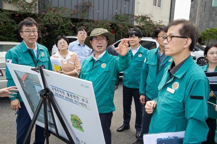 공한지 활용방안에 대해 보고받은 정 시장은 호우 대비 집수조 용적 및 펌프 토출량 등 배수펌프장 운영현황을 살피고 수문 설비 시설을 면밀하게 점검했다.