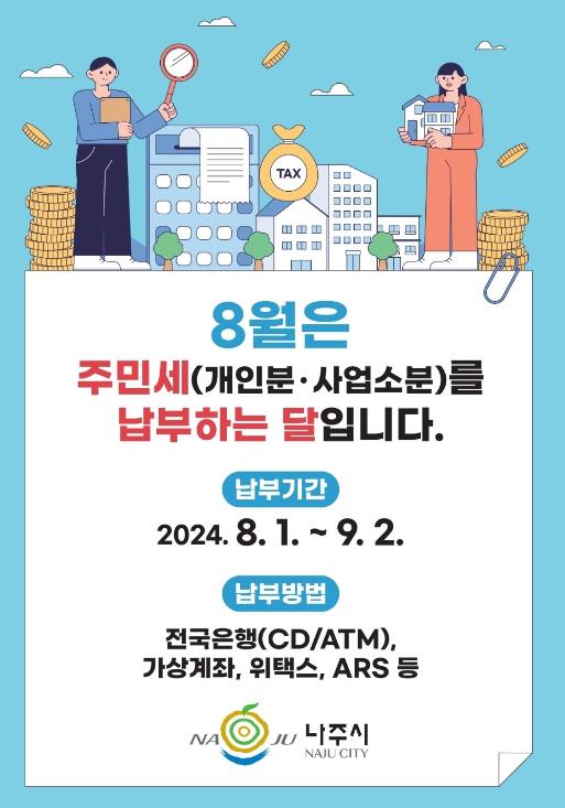 ![]() 나주시, “8월은 주민세 납부의 달”… 9월 2일까지 납부 |