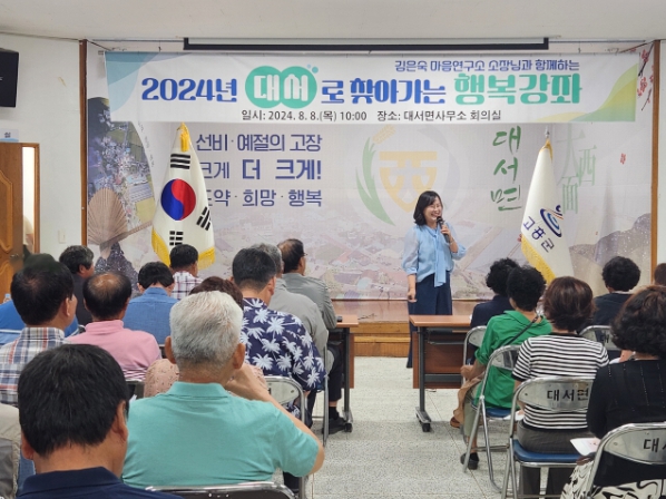 고흥군은 지난 4월 25일 포두면을 시작으로 희망하는 5개 지역을 선정하여 강좌를 운영하고 있으며, 이번 대서면에서는‘건강한 100세를 향하여’라는 주제로‘김은숙의 마음연구소’ 김은숙 소장의 강의가 진행됐다.