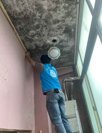 대상 가구는 하당동의 다세대 주택에 거주하는 자로 천장 누수로 집안 곳곳에 곰팡이가 가득한 열악한 환경에서 생활하고 있는 홀로사는 어르신으로 베란다 천장은 물이 새어 곰팡이로 시커멓게 뒤덮여 있었다.