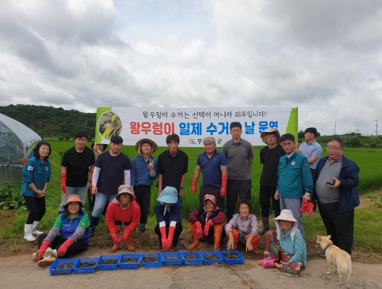 이에 군에서는 공무원, 마을주민, 경작자 등이 함께 왕우렁이 일제 수거 기간을 운영하여 배수로로 유입된 왕우렁이를 7월 한 달간 1,250kg을 수거했다.