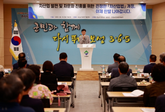 ![]() ‘차산업 발전을 위한 정책토론회’에서 김철우 군수가 인사말을 하고 있다. |