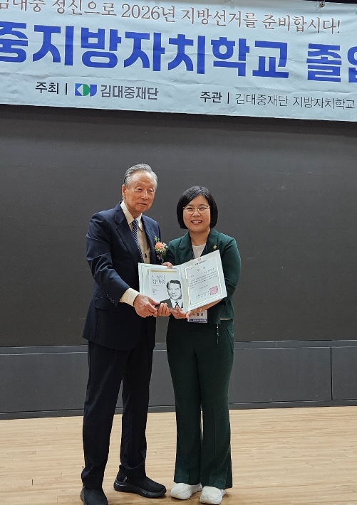 ![]() 박경미 의원(더불어민주당, 광양4)이 김대중지방자치학교 제1기 교육과정을 수료했다. |