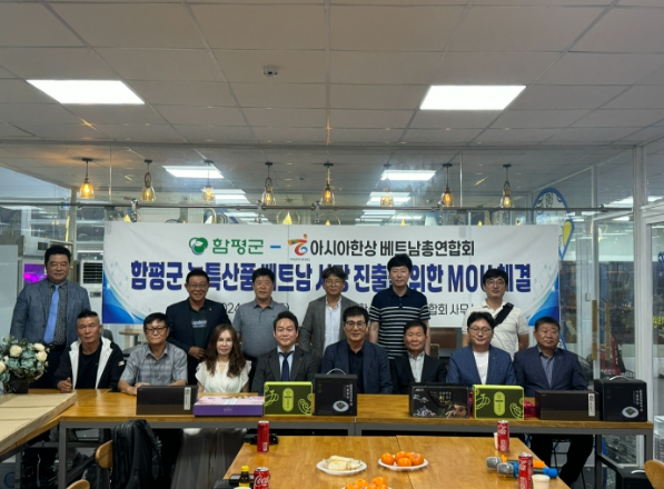 함평군은 10일 ‘2024 베트남 국제식품박람회’가 열리는 호치민 소재 한상 사무실에서 김정민 아시아 한상 베트남 총연합회장과 함평 우수 농특산품의 베트남 시장 진출 협력을 위한 MOU를 체결했다고 밝혔다.