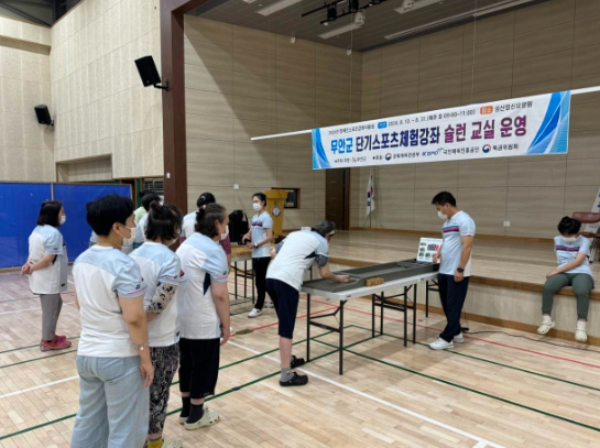 이번의 단기 장애인 스포츠 체험 교실은 국민체육진흥기금 및 복권기금이 후원하는 스포츠강좌이용권 사업의 일환으로 추진되며, 매주 토요일마다 삼향읍 애중복지재단 성산정신요양원 강당에서 장애인생활체육 전문 강사 2명이 요양원생 20명을 대상으로 슐런 종목 수업을 지도한다.