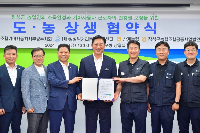 군에 따르면 지난 9일 (재)장성먹거리통합지원센터, 삼계농협, 장성군농협조합공동사업법인과 기아자동차지부 광주지회가 협약을 맺고 도농 상생을 위해 힘을 모으기로 결의했다.