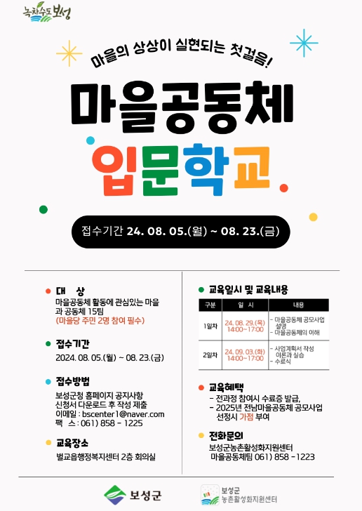 ![]() 2024년 보성군 마을공동체 입문학교 참여자 모집 |