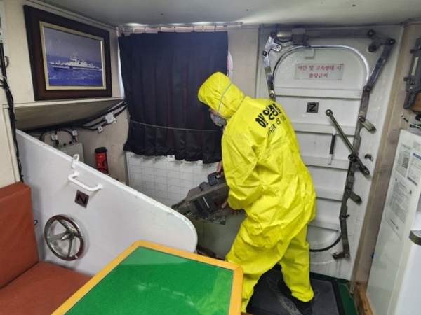 특히, 밀폐된 공간에서 생활이 이루어져 감염병 확산에 취약한 경비함정은 자체 실내 소독과 ‘함정 클린데이’ 운영을 통해 함정 내외 청결상태 향상을 위해 노력하고 있다.