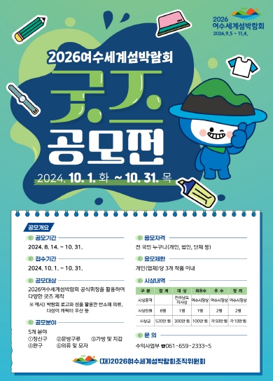 ![]() 2026여수세계섬박람회 굿즈 공모전 개최 |