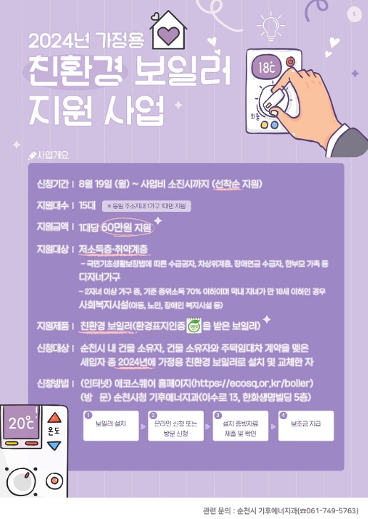![]() 순천시, 2024년 ‘가정용 친환경 보일러’ 설치비 지원 |
