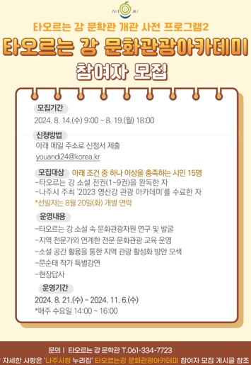 ![]() 나주시, 타오르는 강 문화관광아카데미 참여자 모집 |