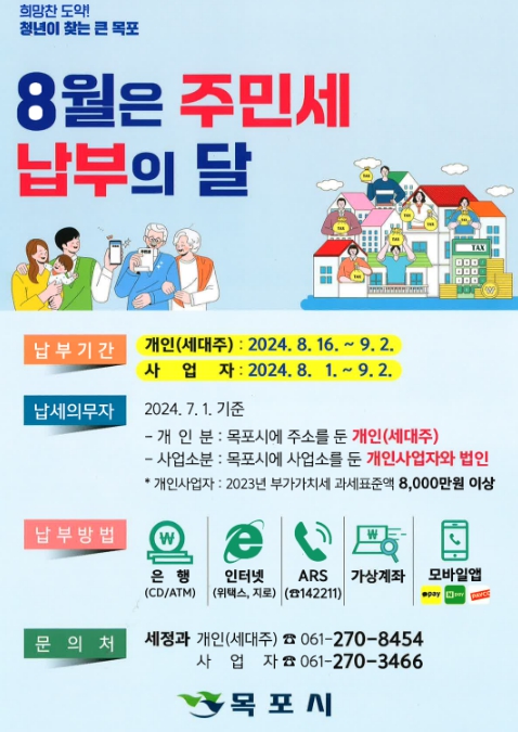 ![]() 목포시, 8월은 주민세 납부의 달입니다! |