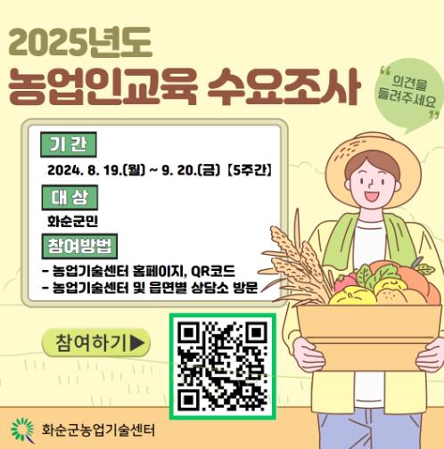 ![]() 화순군, 2025년도 농업인 교육 운영 수요조사 |