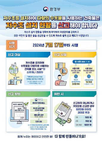 또한, 법 시행 당시 저수조를 운영 중인 해당 건축물의 소유자나 관리자도 시행일로부터 1년 이내(2025.07.16.까지)에 저수조 설치 현황을 신고해야 한다.