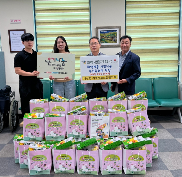 정제원 나산면장은 “항상 면민을 위해 헌신하시는 나산농장과 지역사회보장협의체 위원 여러분께 감사드린다”며 “현재 폭염 경보가 지속되는 가운데 어르신들이 안전한 여름을 보낼 수 있도록 면에서도 적극 지원하겠다”고 말했다.