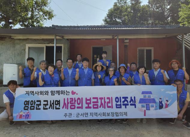 이날 입주식은 차상위계층 가구의 누수와 곰팡이로 뒤덮인 낡은 흙집을 새 단장하고 여는 집들이 행사. 군서면지사협은 올해 4월 정기회의에서 이 가정의 주거환경개선사업을 결정했다.