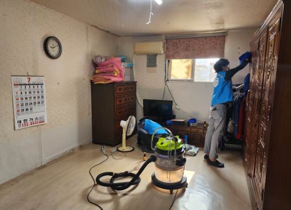 이른 아침부터 시작된 봉사활동은 유통기한이 지나 오랜기간 방치된 묵은 음식물 쓰레기를 배출하는 것부터 집안 구석구석 핀 곰팡이를 제거하고 방역 소독하는 것으로 마무리했다.