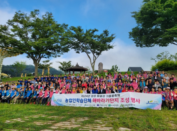 군은 지난 19일 한국농촌지도자회, 한국생활개선회, 4-에이치(H)연합회, 귀농귀촌인협의회 회원 230여 명과 함께 황룡강 일원에서 해바라기 단지 조성 행사를 가졌다.